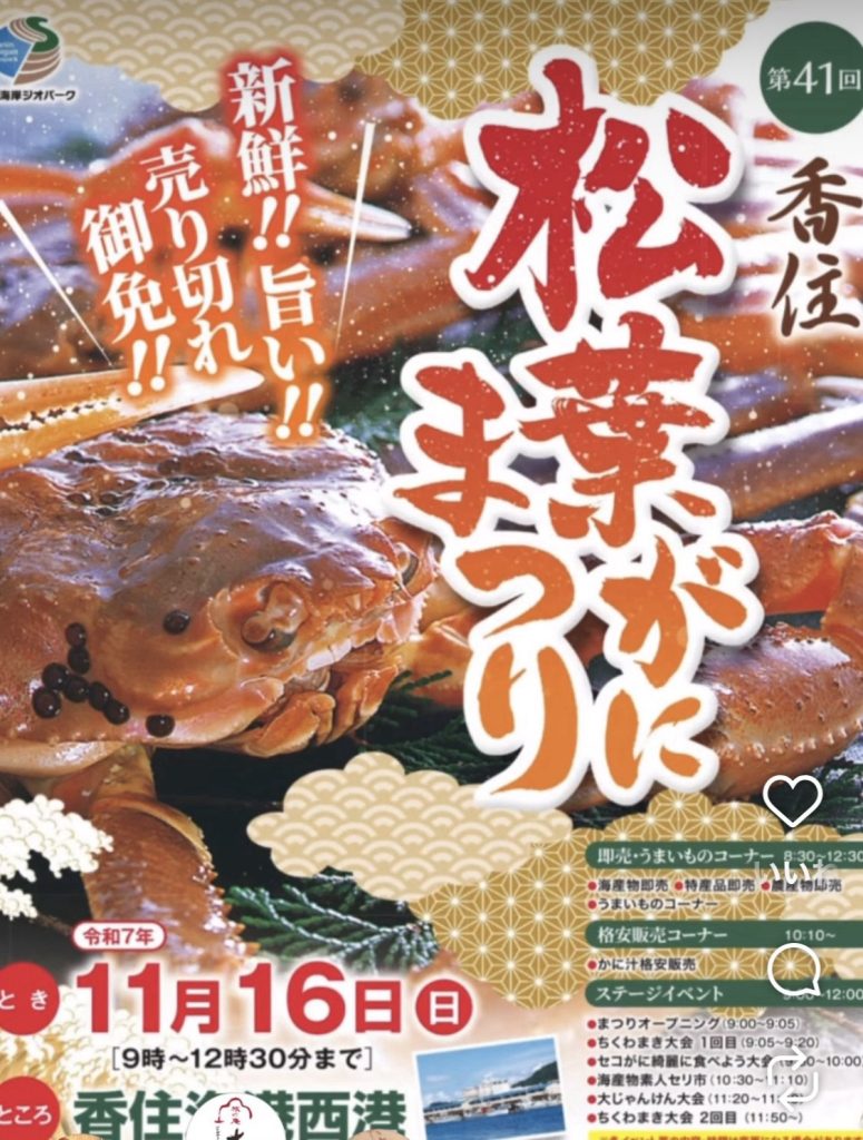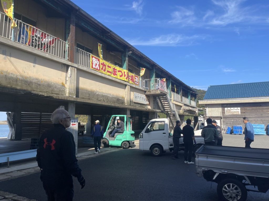 2025.11.15. 今日の香住漁港は晴天です。明日は第41回香住松葉ガニ祭りが開催されます。今日は実行委員会の役員様に準備をしていただいています。明日も晴れの予想です。