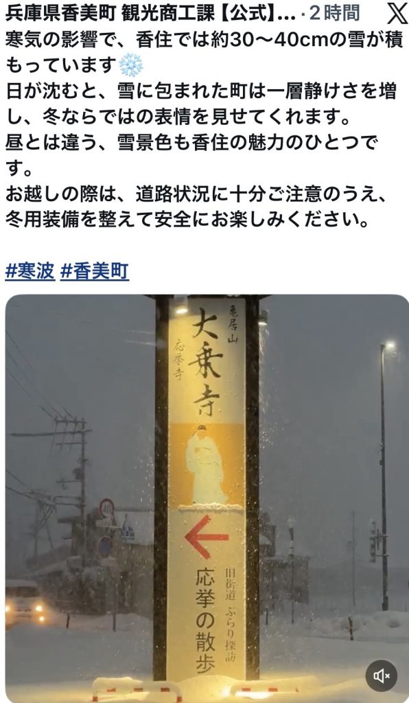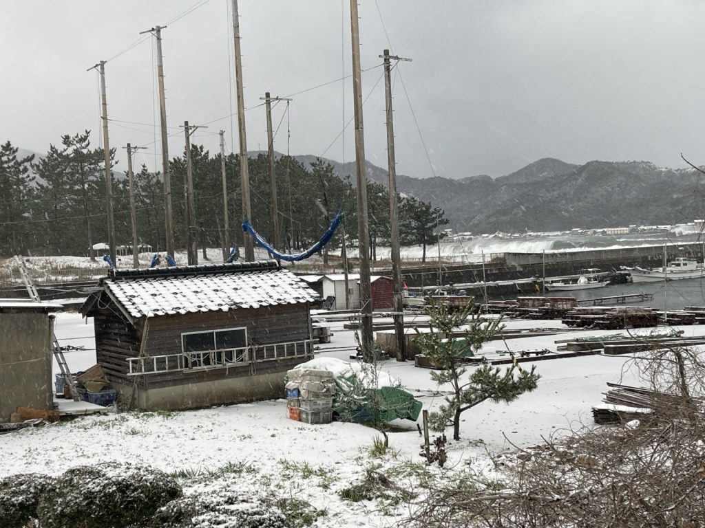 2026.1.23. 今日の香住湾はとても沢山の雪が降りました。北村工務店様にお願いして駐車場3ヶ所を除雪していただきました。お陰様で今日のお客様 のご到着に間に合いました。あとはたっぷりと美味しいカニを提供いたします。古くからのお得意様ばかりでございます。「途中、思ったほど雪はなかったよ。」との事、ゆっくりしてくださいませ。