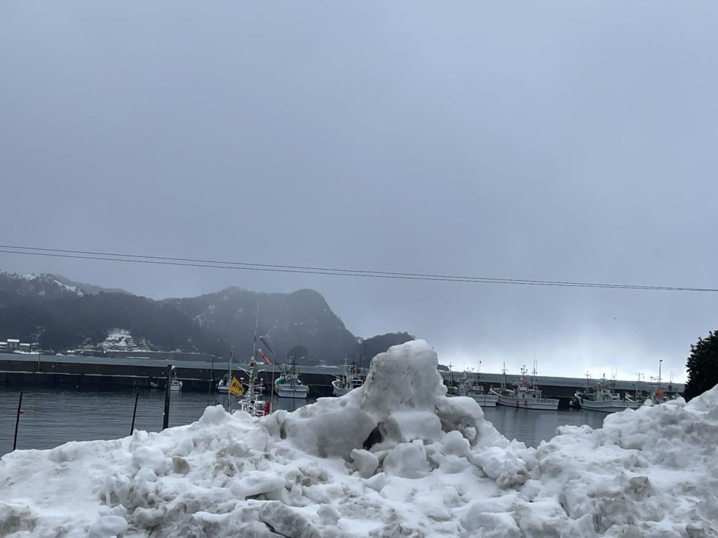 2026.1.30. 今日の香住湾はみぞれが降ったり、牡丹雪が降ったり寒い1日でした。新しい積雪はありませんでした。引き続き明日も警戒が必要です。顧客の皆様どうぞお気をつけてお越しくださいませ。寒い夜こそホクホクのカニ天ぷらが似合います。