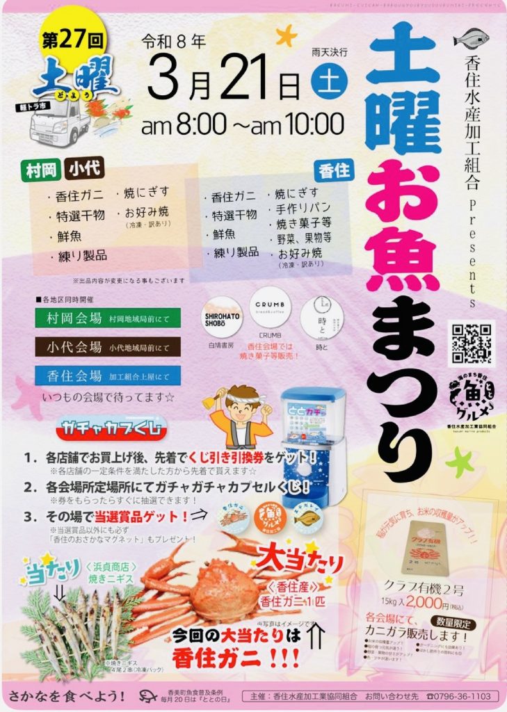 2026.3.18. 今日の香住湾は小雨が降っています。香住漁港共進丸の大型のど黒をゲットしました。今週21日土曜日、香住区、村岡、おじろ、それぞれの会場にて土曜お魚祭りが開催されます。 2026年3月18日 直販特価でお得!ご予約は↓↓↓ <ネット特価で予約できます> スマホでご覧の方は、タップで即コール! ↓↓↓↓↓ 電話:0796-36-0028(Visited 6 times, 6 visits today)