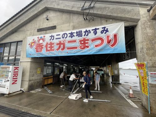2025.9.19. 今日の香住漁港は雨が降っています。明日開催する「第15回香住がにまつり」の準備が役員並びに香住がにの漁師さんの全面的な協力の下徐々に整ってきました。皆さんのお陰で素晴らしいイベントになると思います。