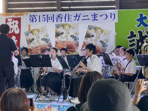 2025.9.20. 第15回香住がに祭りが華々しく開会いたしました。雨の予報でしたが、晴れてきました。お昼頃は暑くなりました。前段で香住一中のブラスバンド部の演奏もありオープニングが盛り上がりました。またYouTuberで香美町観光大使の石田優美さんの出場もあり盛りだくさんの香住がに祭りになりました。12,000人の来場の皆様に心より感謝申し上げます。