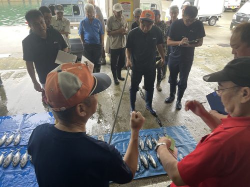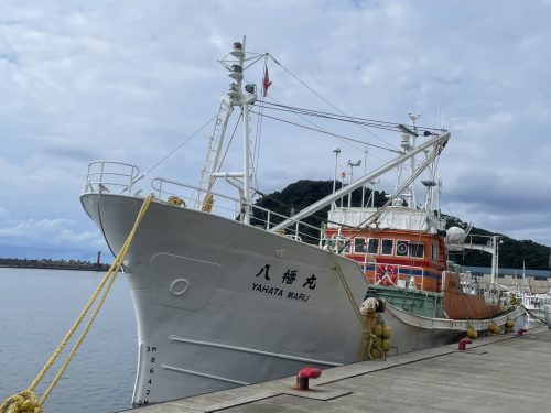 2025.9.26. 今日の香住漁港は曇り空です。アマルベ地位置網漁はヨコワが沢山上がっていました。日本海フーズさんがじゃんけんの末に大きいそれをゲットしてくれました。