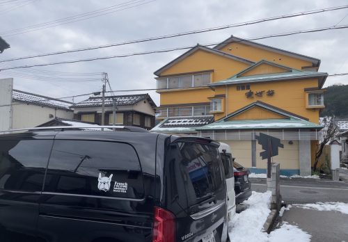 2026.1.9. 今日の香住湾も荒れています。寒波が来る予報です。明日明後日来られる顧客の皆様、お気をつけてお越しくださいませ。いつもお世話になっているマルニ竹内商店様に寄りました。むかし十両時代に丸世井にご宿泊頂きました天風関の写真が懐かしいです。今日のカニの浜値は年末の1.5倍ぐらいしたそうです。これからグーンと上がりますね。