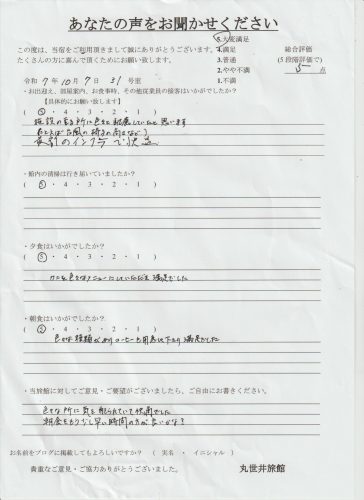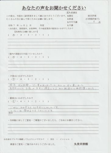 2025.10.5. 夕食満足です。朝食も美味しくいただきました。