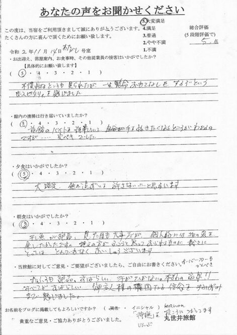 2020.11.14. お風呂も絶品、すばらしい、汗が引かない本物の温泉!!すべてが素晴らしい。ご主人様の確固たる信念をすみずみまで感じました。