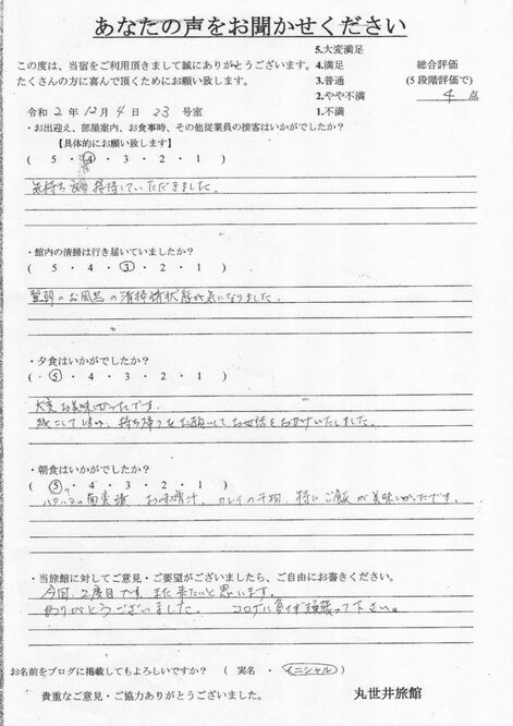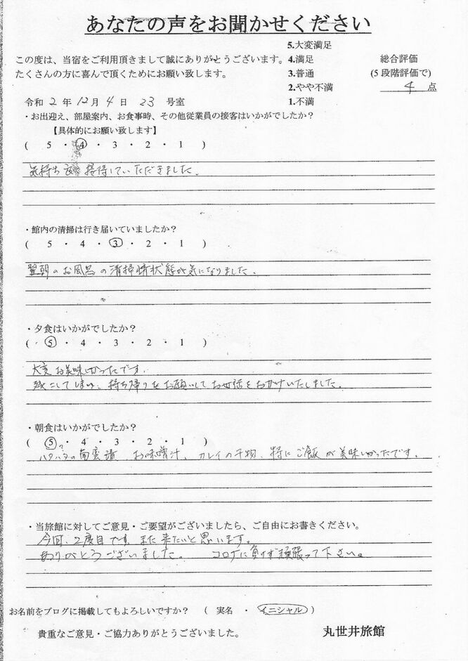 2020.12.4. 今回2度目です。また来たいと思います。ありがとうございました。コロナに負けず頑張ってください。