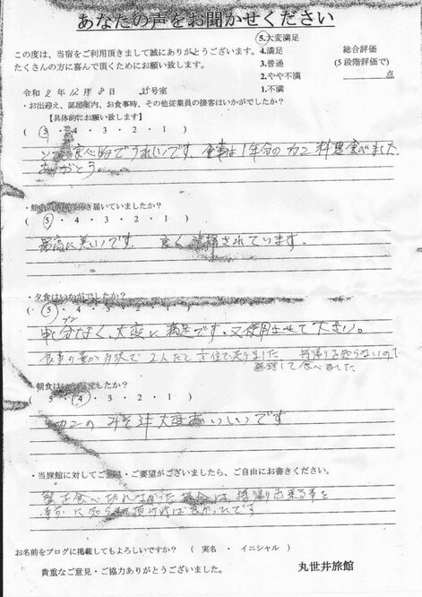 2020.12.8. とても良心的でうれしいです。食事は一年分のカニ料理食べました。ありがとう。