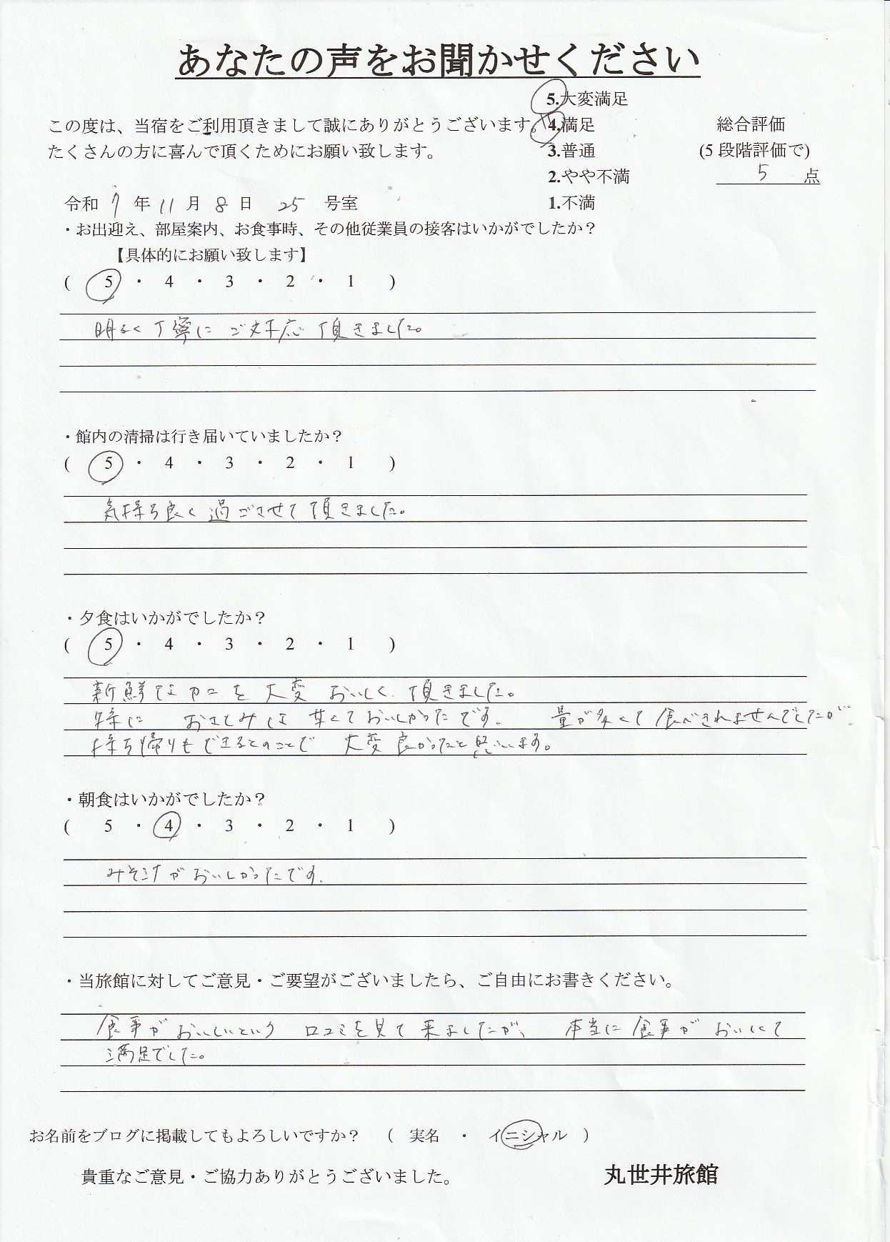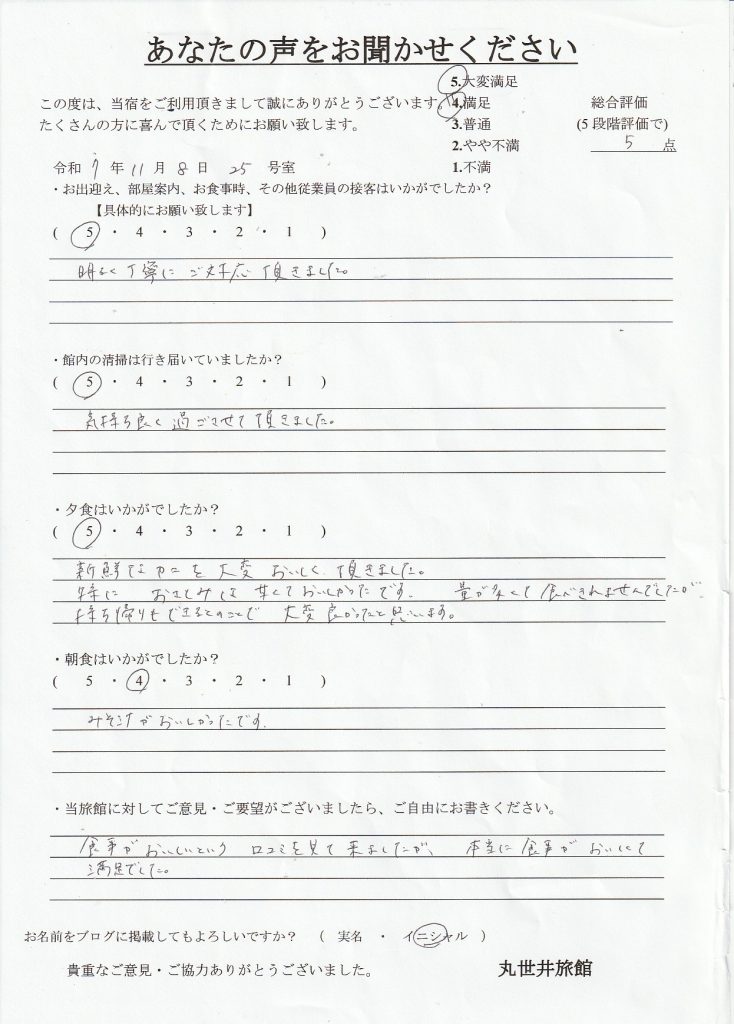 2025.11.8. 食事がおいしいという口コミを見て来ましたが、本当に食事がおいしくて満足でした。